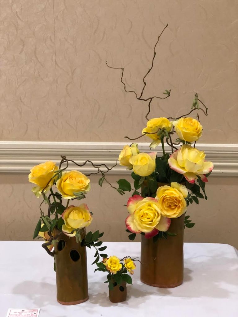 Since a picture is worth a thousand words, I would like to share a few of my rose show photos. First, congratulations to Andrew Plasz, Libertyville, IL for winning the Mini Duchess Arrangement Award. (Mini Roses: ‘Incognito’ and ‘Showstopper’)